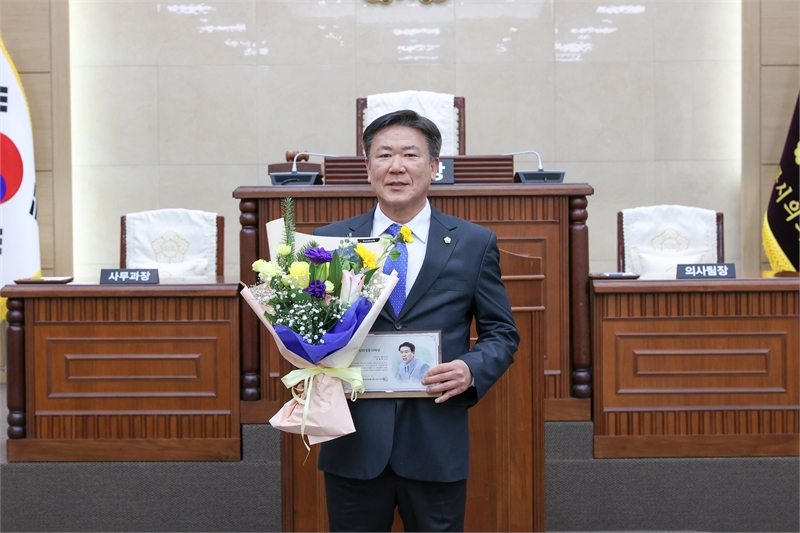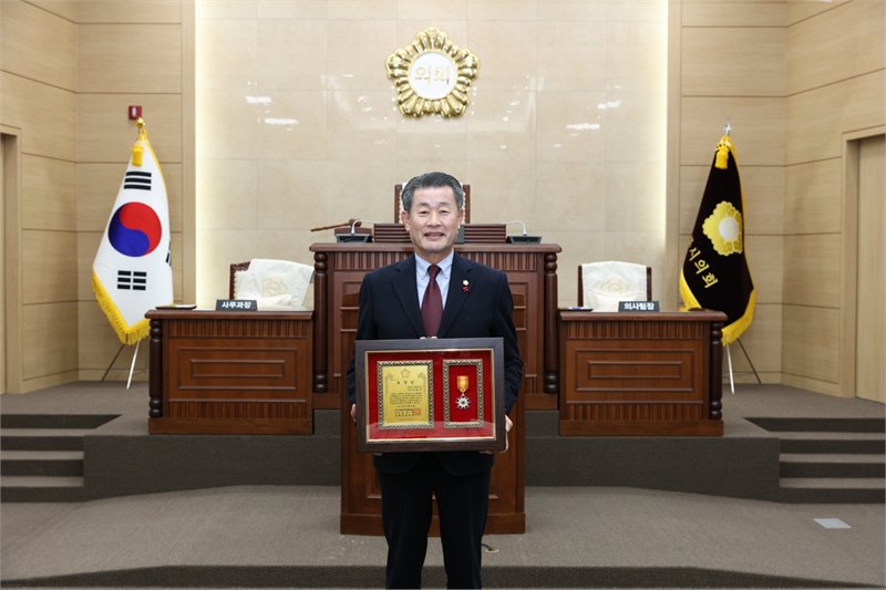 기념사진에 이응우 계룡시장과 김범규 시의회 의장이 함께 했다.