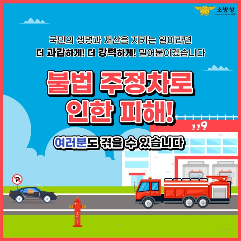 계룡소방서(서장 이동우)는 화재 및 각종 재난 발생 시 소방차의 신속한 출동과 원활한 현장 활동을 방해하는 소방시설 주변 불법 주·정차와 소방차 전용구역 주차 행위에 대해 시민들의